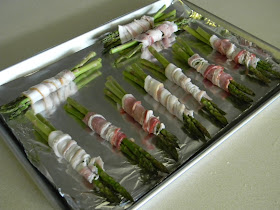 4.  Wrap asparagus with bacon. ( I wrap 3 asparagus with one bacon because they were pretty thin)